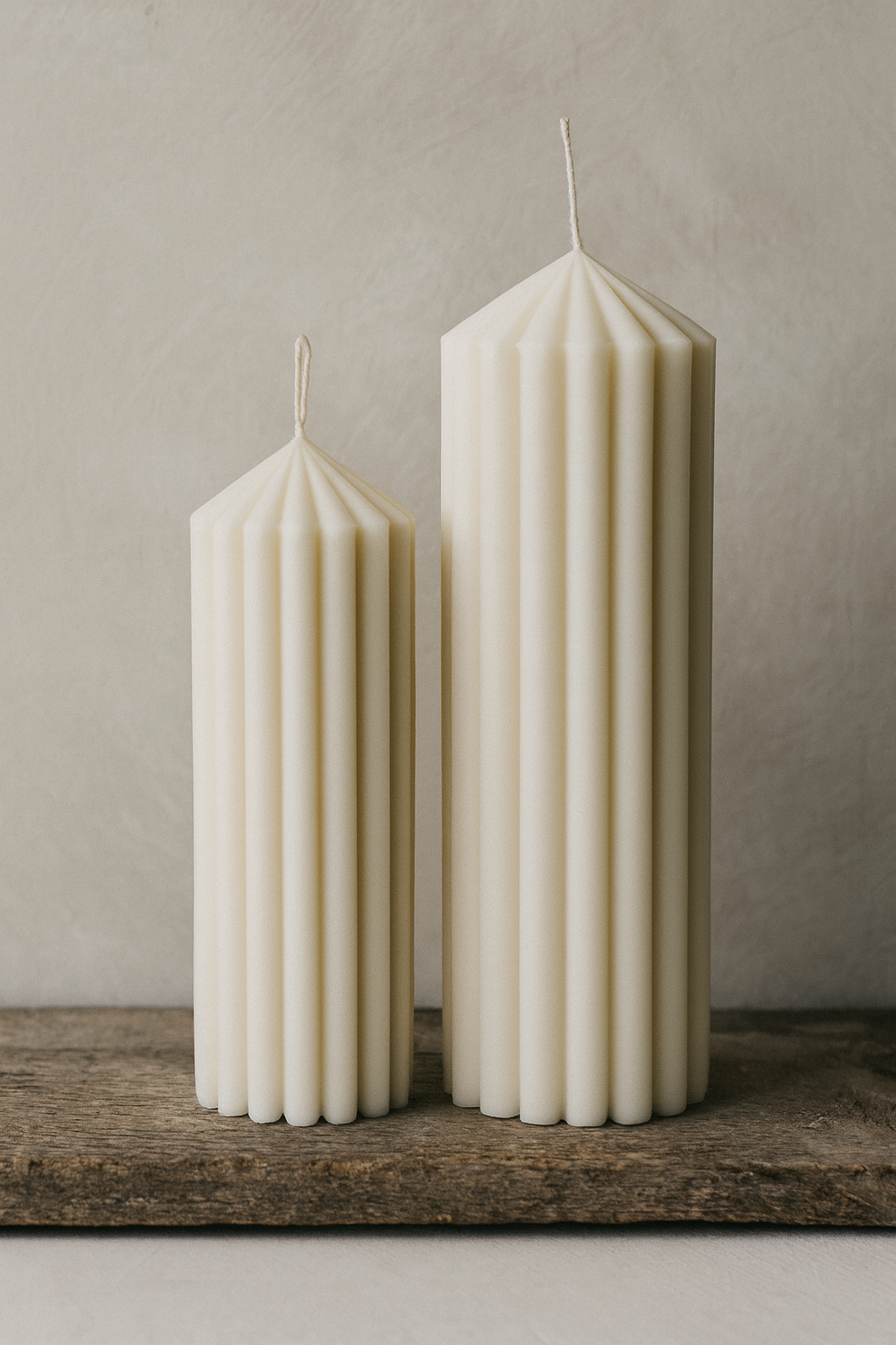 MAJIME | Håndstøbt Rillet Søjlelys i Soja- & Bivoks